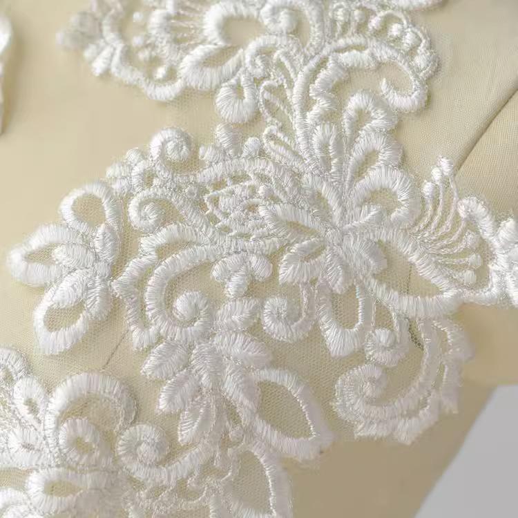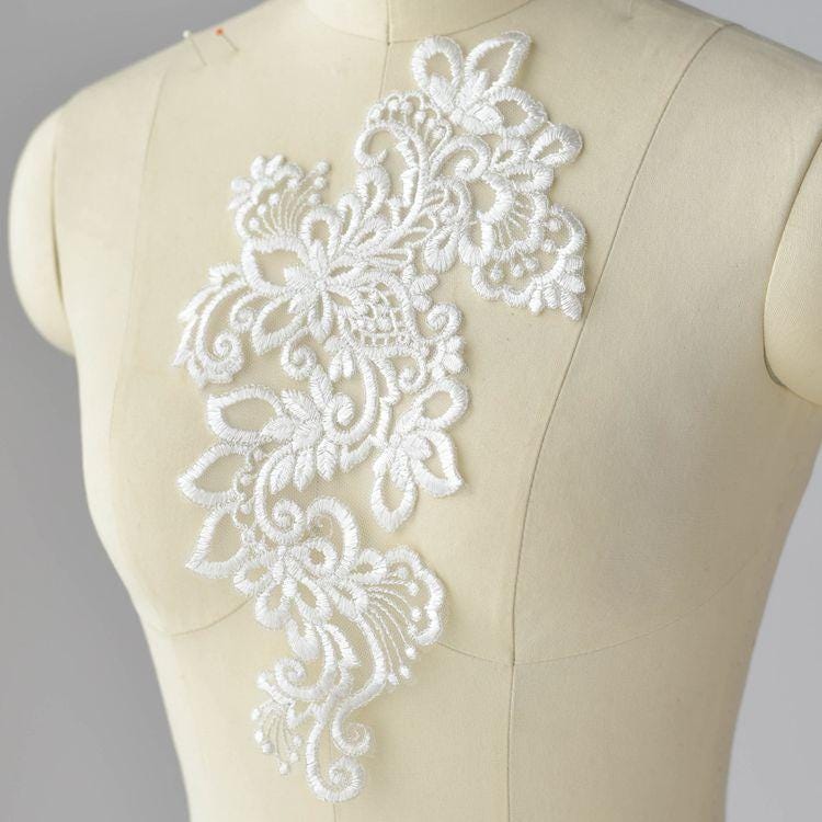Bridal Embroidered Lace Applique Pair: Wedding Gown Embellishment