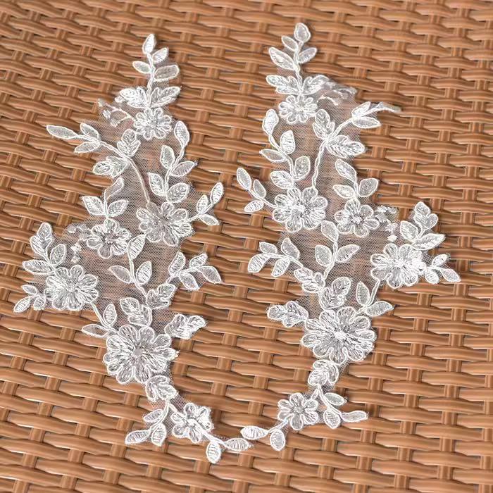 Bridal Lace Applique Pair: Floral Embroidery for Wedding Gown