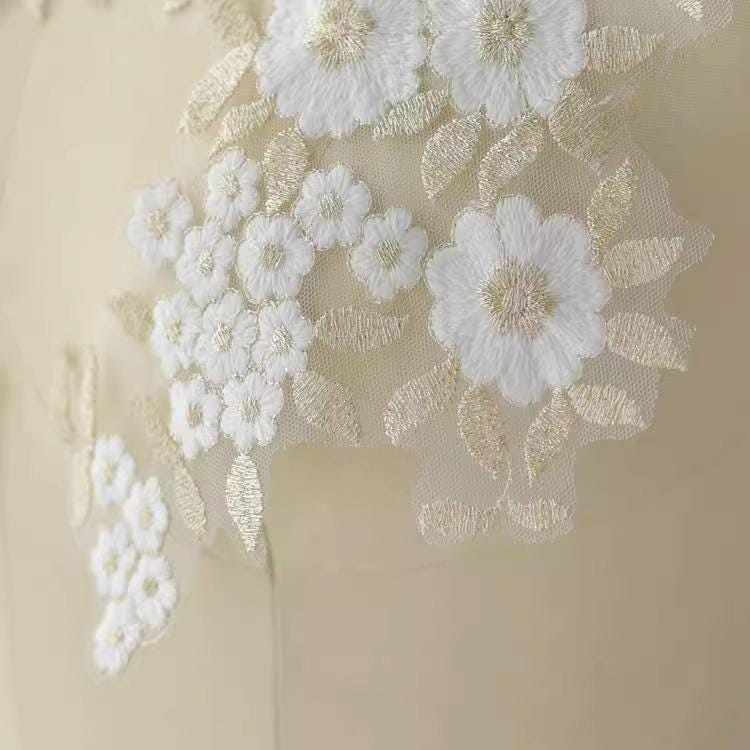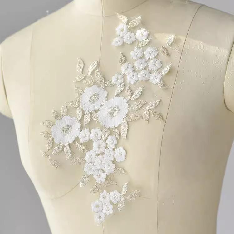 Floral Embroidered Lace Applique Pair: Bridal Gown Embellishment