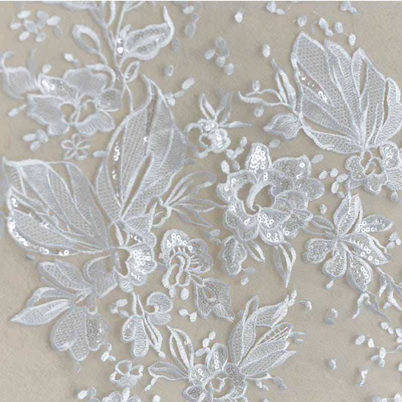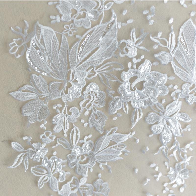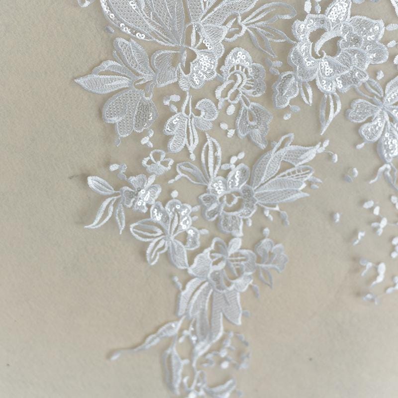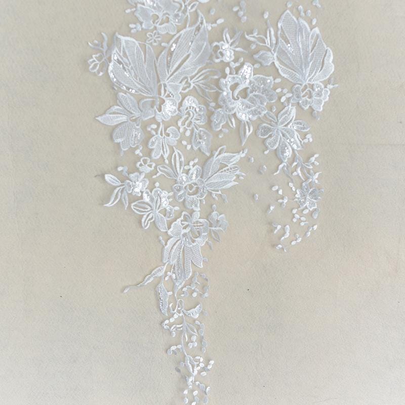 White Corded Lace Applique: Embroidered Bridal Gown Dress (15x34 5/8 in)