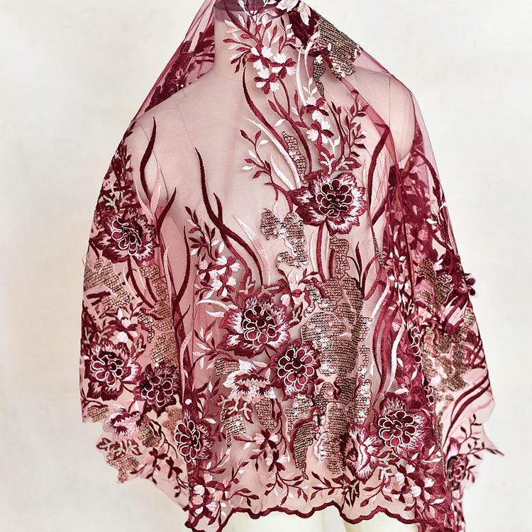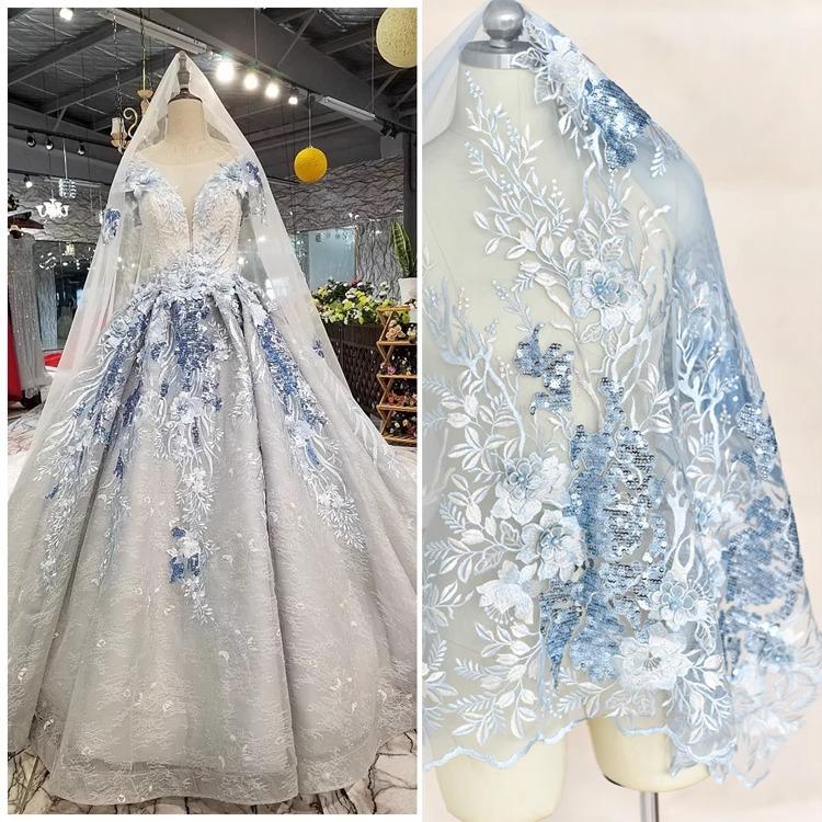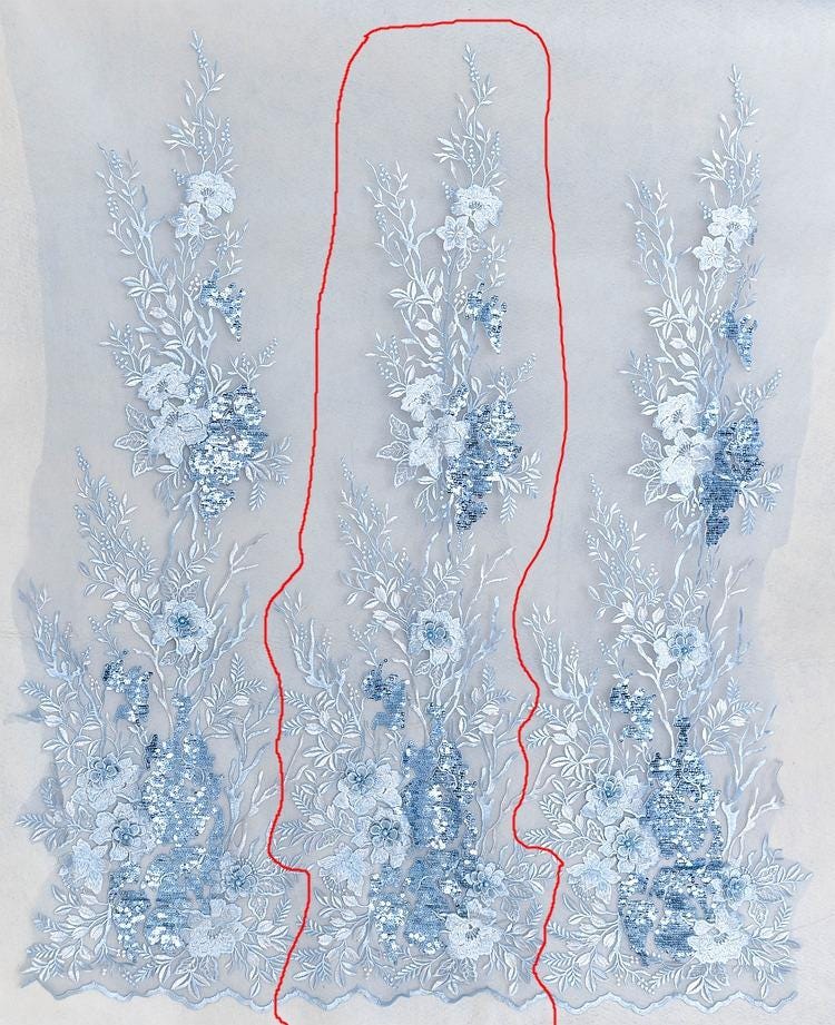 White Embroidered Bridal Lace Applique: Corded Wedding Gown Fabric