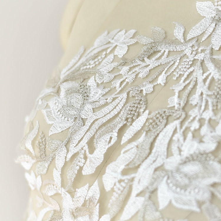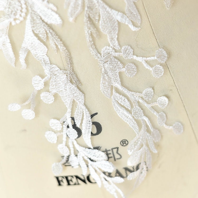 White Floral Lace Applique: Bridal Bodice Embellishment (11 7/8 x 20 7/8 in)
