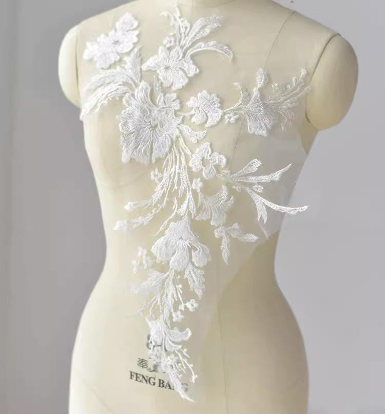 White Floral Lace Applique: Bridal Dress Bodice