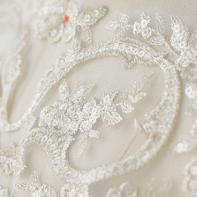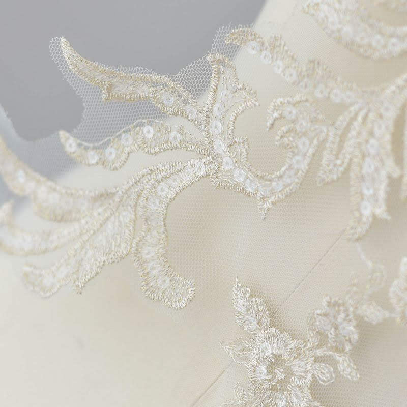 White & Gold Bridal Lace Applique: Wedding Dress Bodice