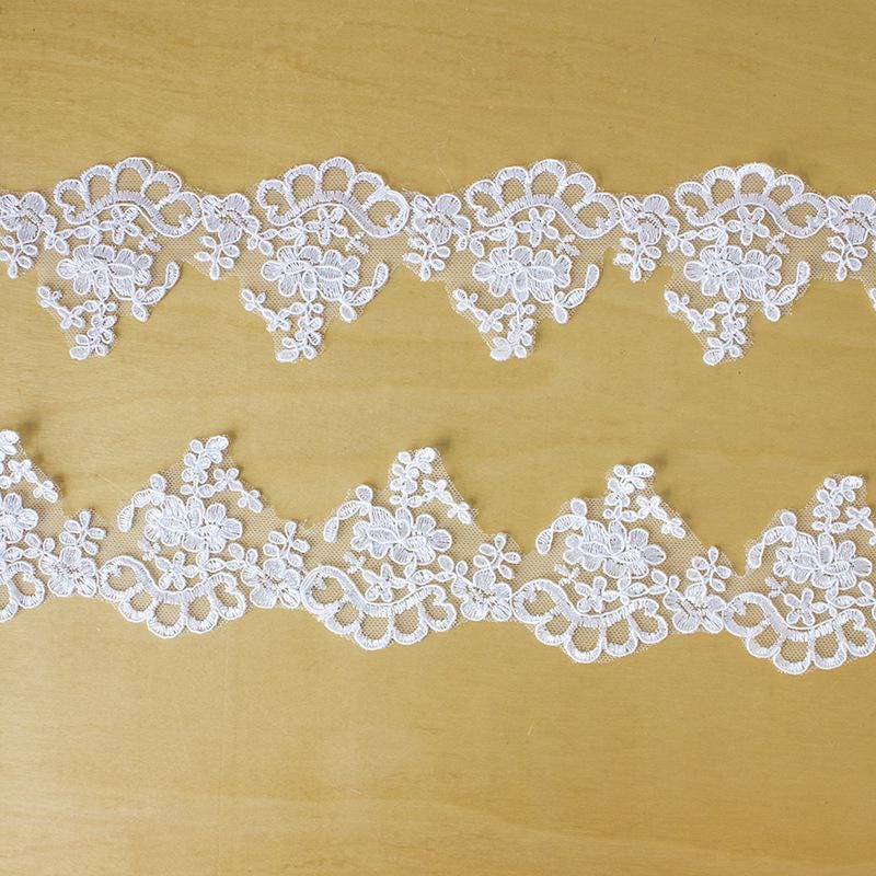 Alencon Bridal Lace Trim: Off White Floral Wedding Dress Embellishment