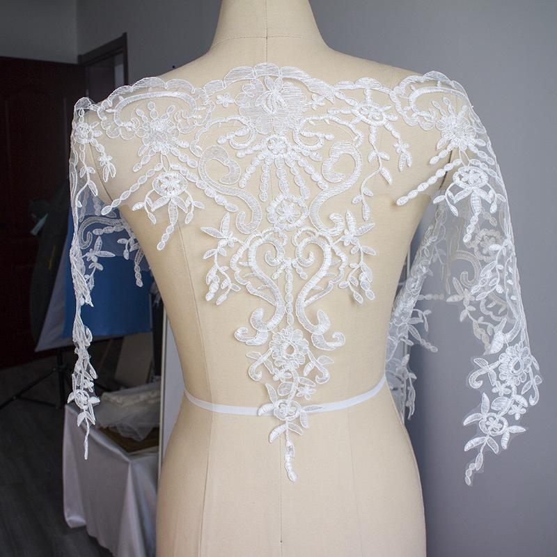 White Alencon Lace Trim with Sequins: Bridal Dress Embellishment