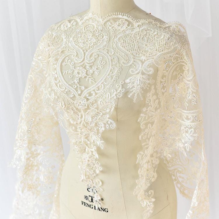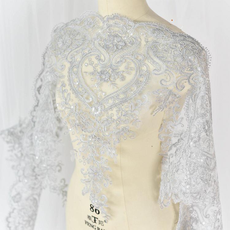 White Bridal Lace Trim with Sequins: Alencon Wedding Dress Fabric