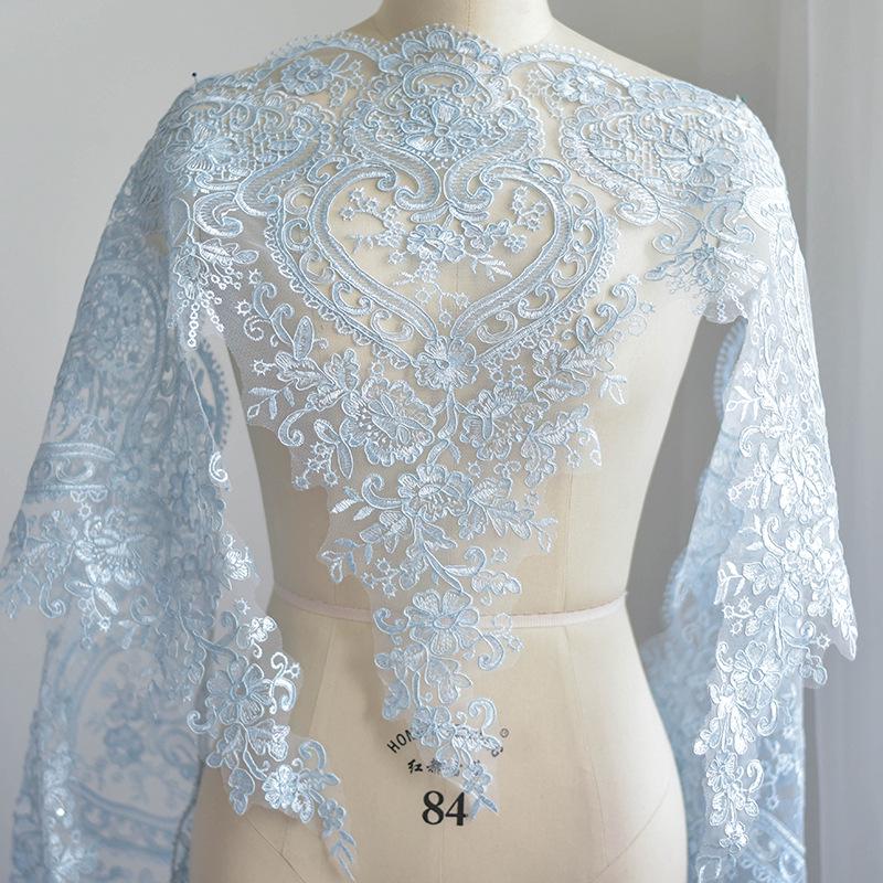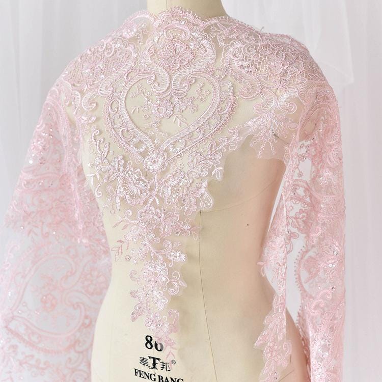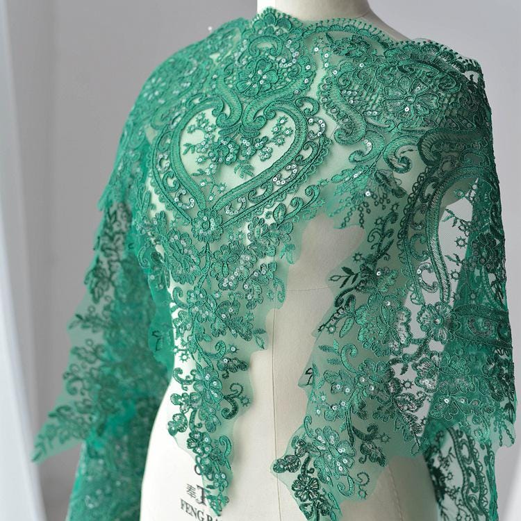 This lace trim comes with a variety of colors. It has sequins embroidered on top of it, perfect for that glamorous bridal dress or night gown.