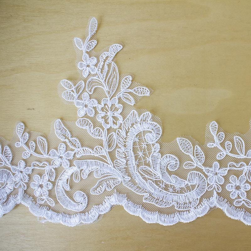 White Bridal Lace Trim with Sequins: Wedding Dress Fabric