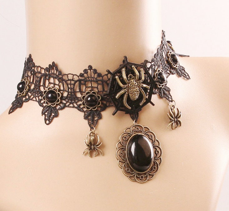 Black Lace Spider Choker: Gothic Halloween Necklace