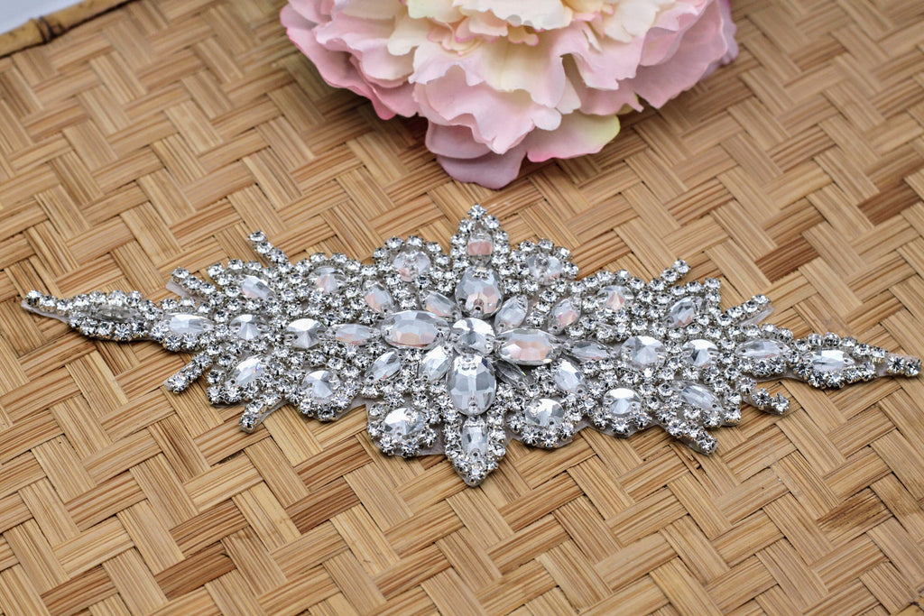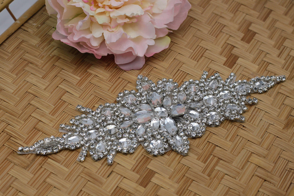 Bridal Dress Rhinestone Applique Belt, Glamorous Iron-On Embellishment for Elegant Wedding Look