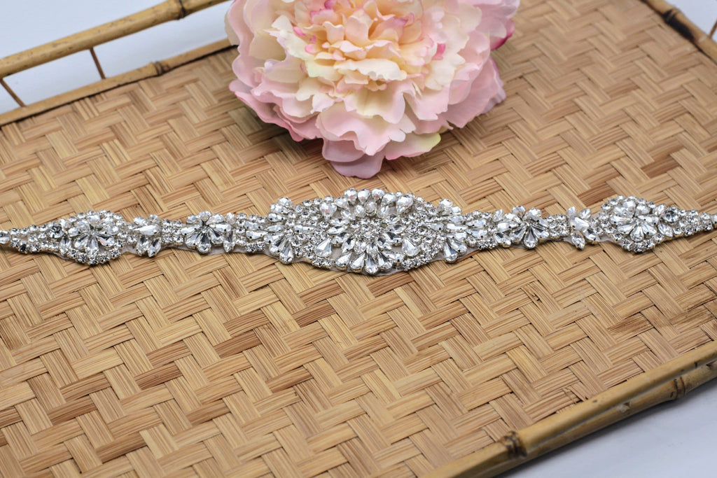Rhinestone Bridal Belt Applique: Iron-On Patch (13.5 x 2 in)