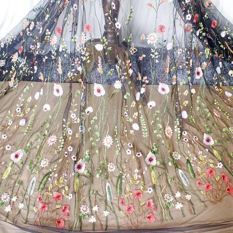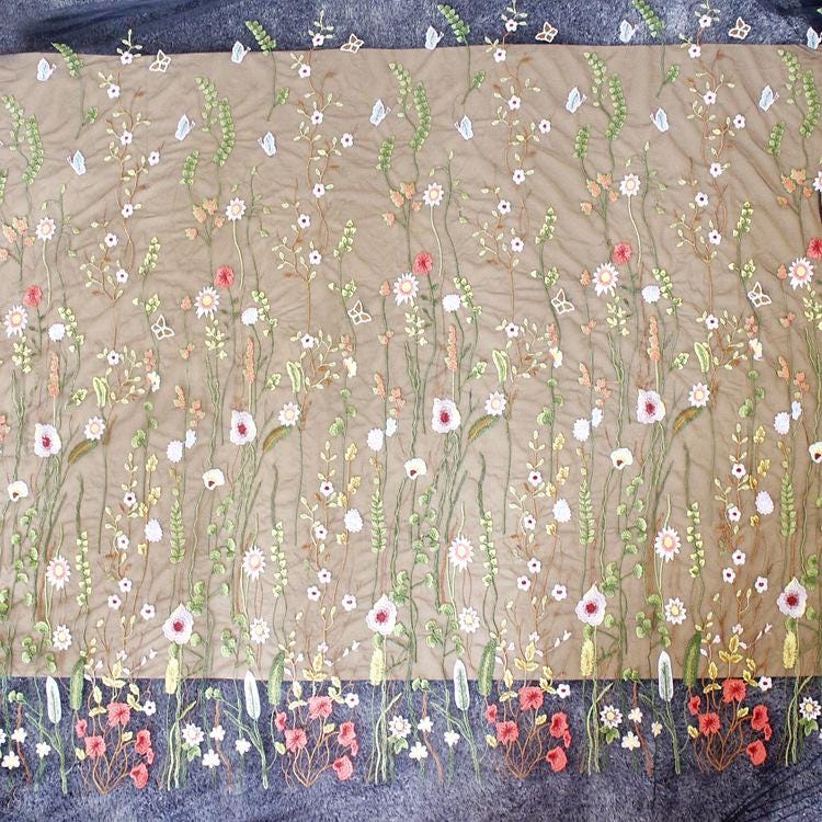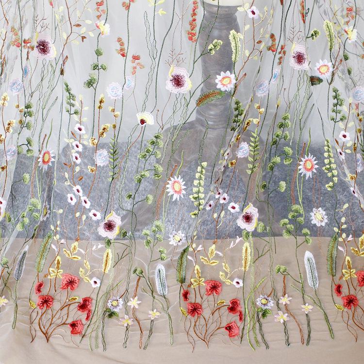 Floral Embroidered Bridal Lace Fabric - White Corded Lace for Wedding Gown