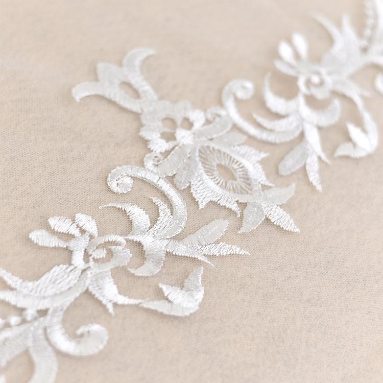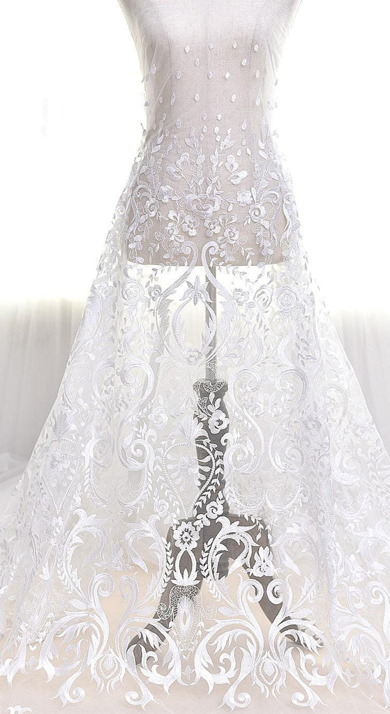White Embroidered Bridal Lace Fabric - Corded Lace for Wedding Gown