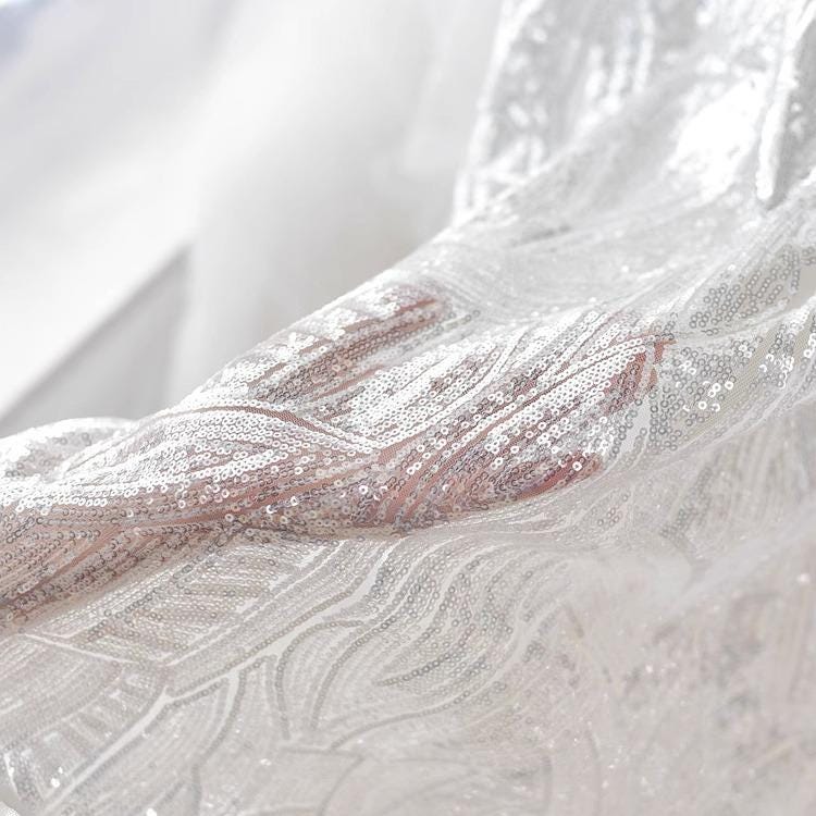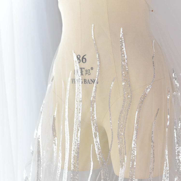 White Embroidered Bridal Lace Fabric: Corded Wedding Gown Lace