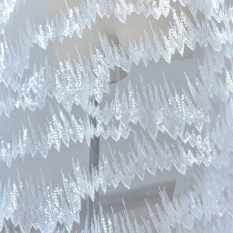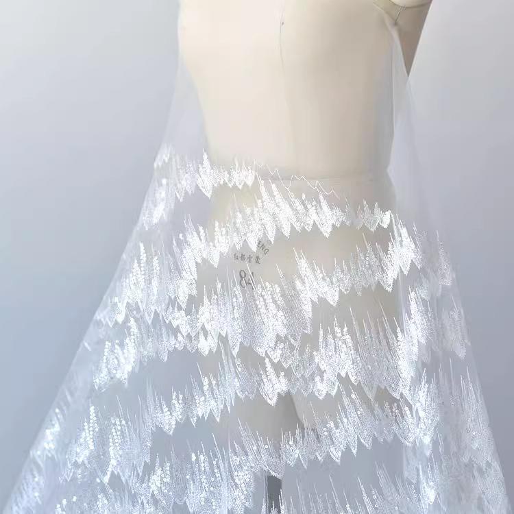 White Embroidered Bridal Lace Fabric - Corded Wedding Gown Lace