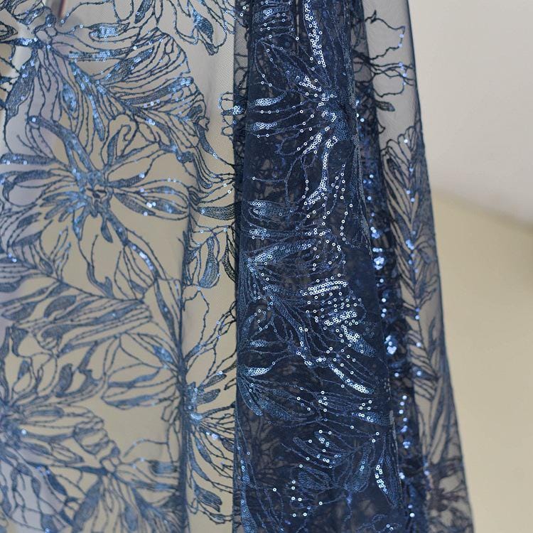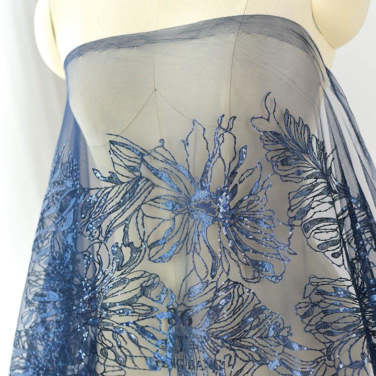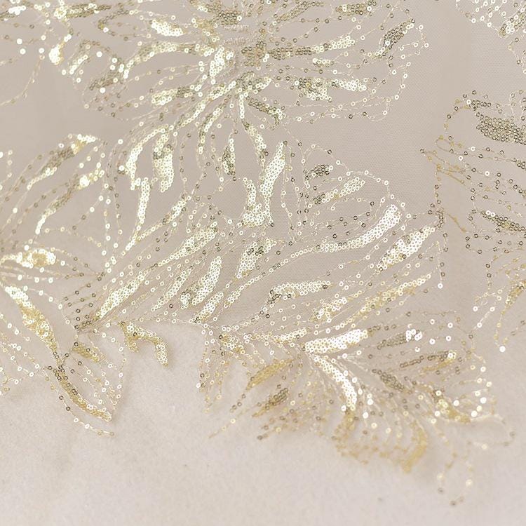 White Embroidered Floral Lace Fabric - Bridal Gown Dress