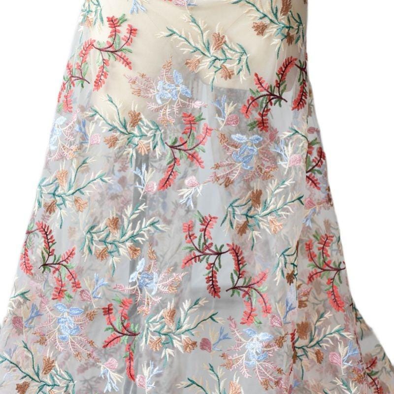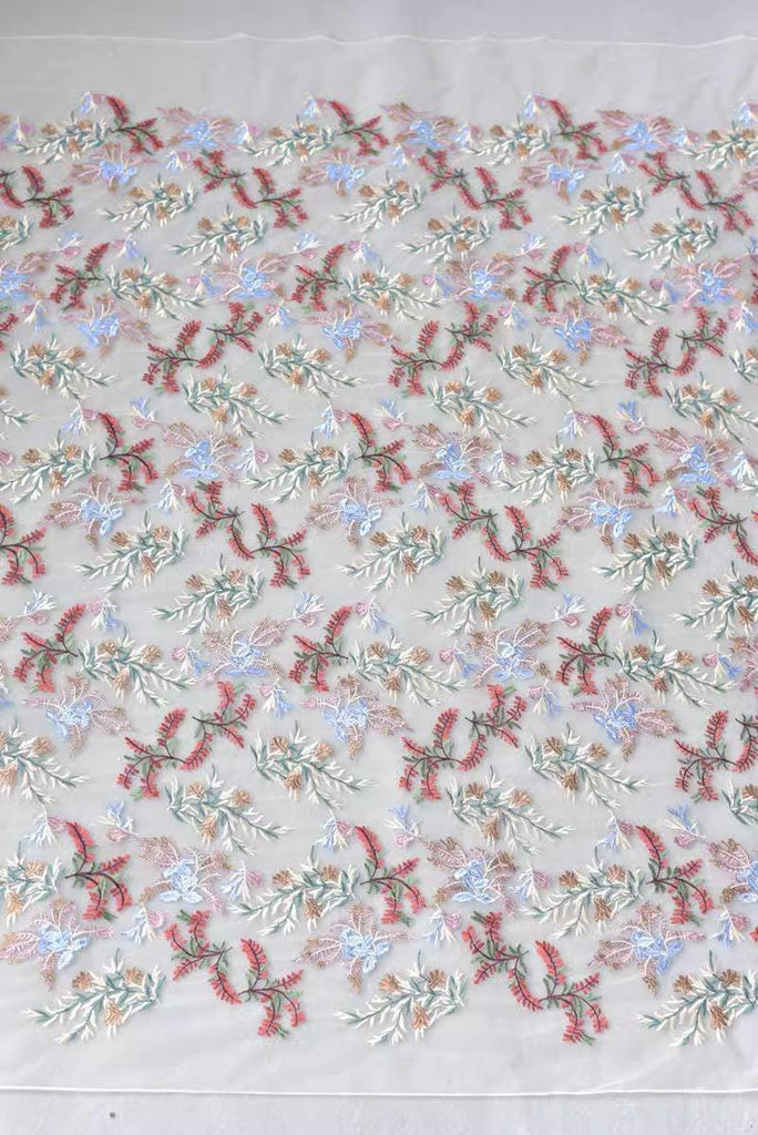 White Embroidered Floral Lace Fabric - Bridal Gown Lace By The Yard